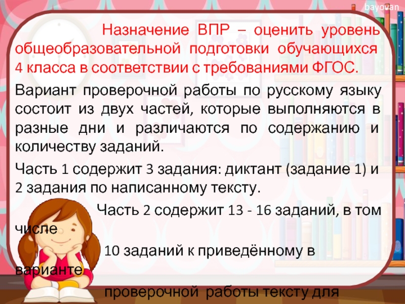 Вариант проверочной работы по русскому языку состоит из двух частей, которые выполняются в разные дни и различаются по содержанию и количеству заданий.