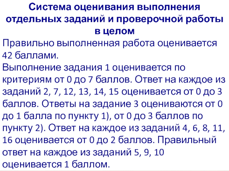 Слайд 20Система оценивания выполнения отдельных заданий и проверочной работы в целом