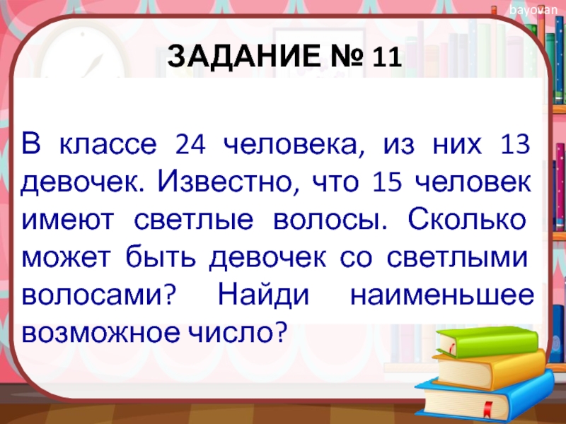 что 15 человек имеют светлые волосы. Сколько может быть девочек со светлыми волосами? Найди наименьшее возможное число?
