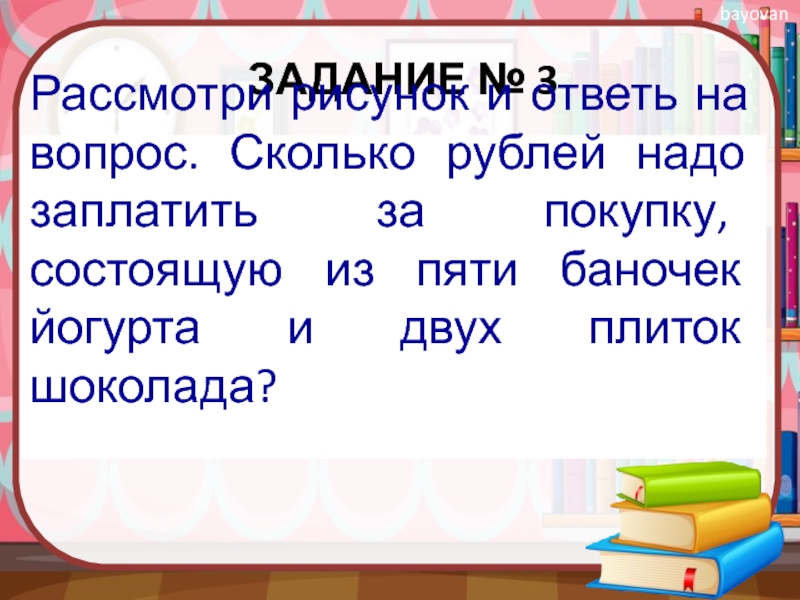 заплатить за покупку, состоящую из пяти баночек йогурта и двух плиток шоколада?