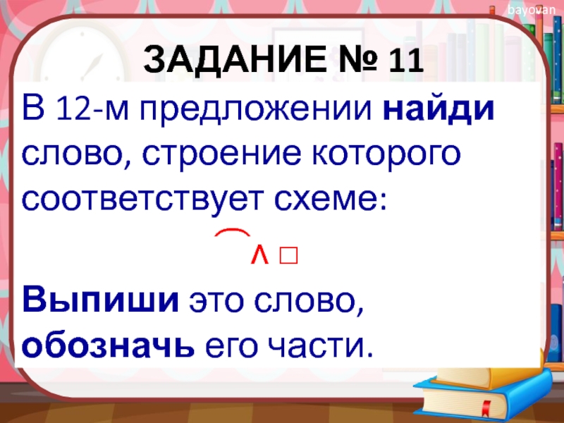 В 12-м предложении найди слово, строение которого соответствует схеме: