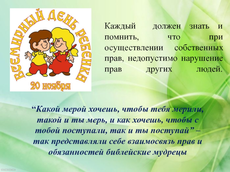 “Какой мерой хочешь, чтобы тебя мерили, такой и ты мерь, и как хочешь, чтобы с тобой поступали, так и ты поступай” – так представляли себе взаимосвязь прав и обязанностей библейские мудрецы