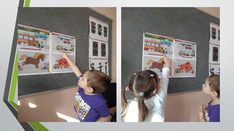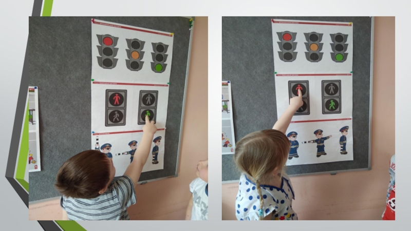 4. Активизировать словарь: светофор, зеленый (красный, желтый) цвет, руль, безопасность, дорога, транспорт, тротуар, проезжая часть, обочина, пешеходный переход, перекрёсток).