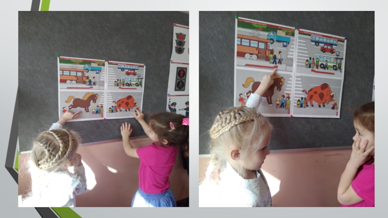 - Рассматривание картинок «Правила поведения на дороге», «Служебные машины». Сюжетные картинки по теме «Как перейти улицу».