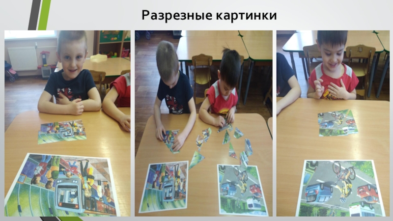 - Дидактические игры: «Дорожные знаки», «Светофор», «Угадай транспорт», «Разрезные картинки».