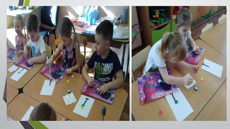 2. Активировать слуховые и зрительные анализаторы, развивать у детей речь, воображение и мышление. Закрепить названия цветов (желтый, зеленый, красный).