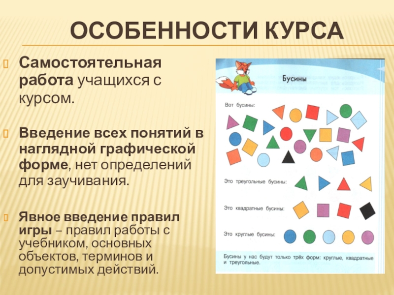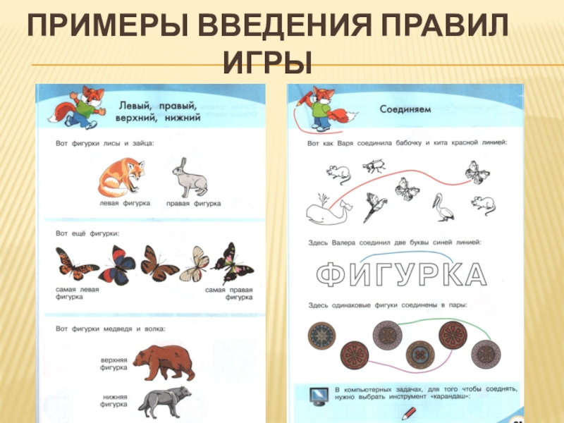 Явное введение правил игры – правил работы с учебником, основных объектов, терминов и допустимых действий.