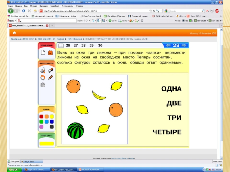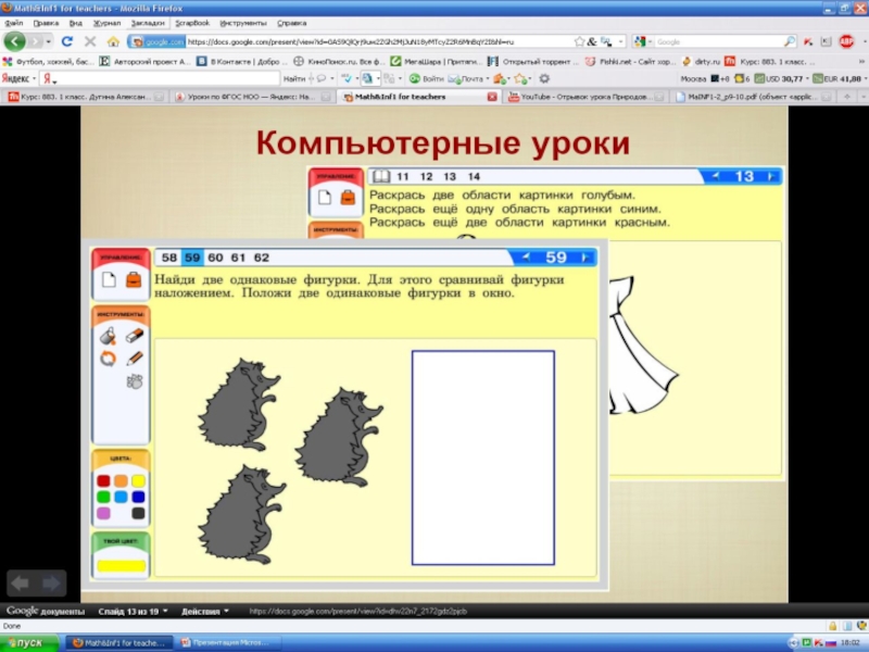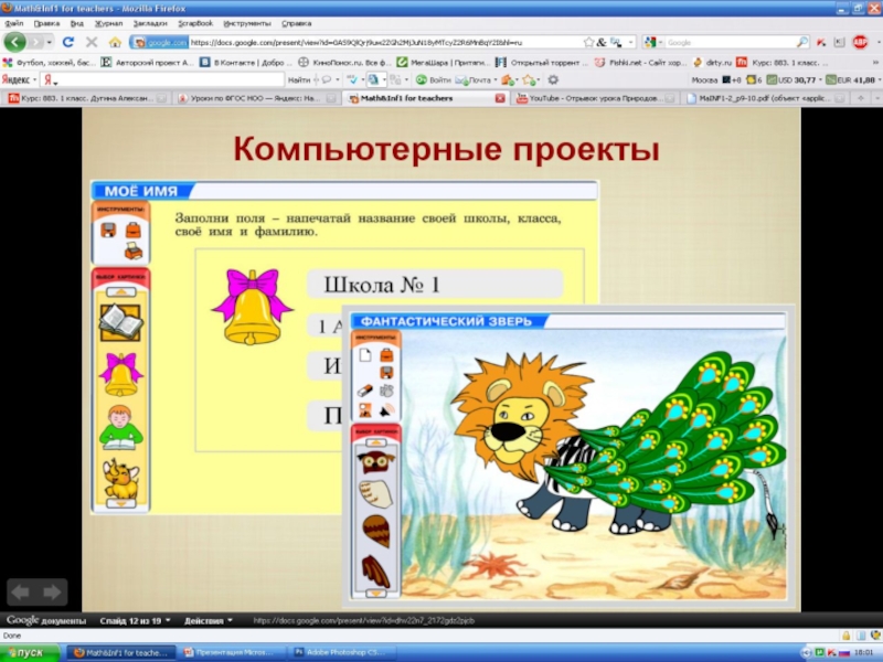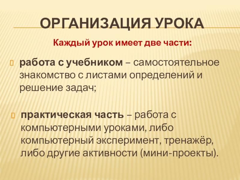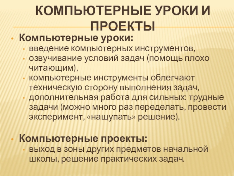 практическая часть – работа с компьютерными уроками, либо компьютерный эксперимент, тренажёр, либо другие активности (мини-проекты).