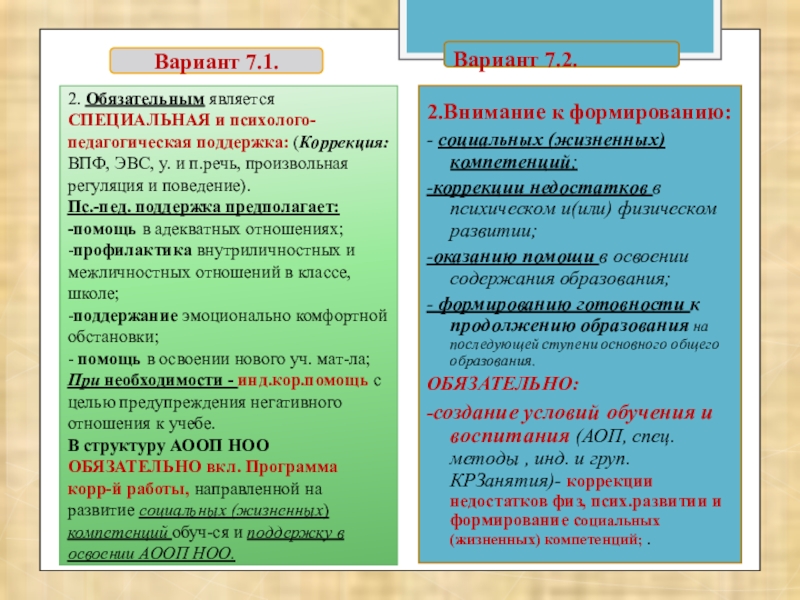2. Обязательным является СПЕЦИАЛЬНАЯ и психолого-педагогическая поддержка: (Коррекция: ВПФ, ЭВС, у. и п.речь, произвольная регуляция и поведение).