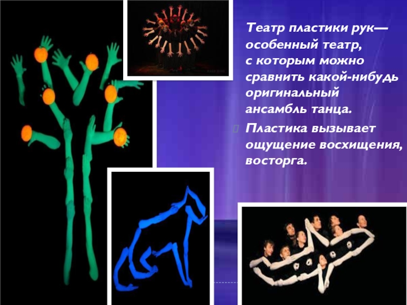 Слайд 11 Театр пластики рук— особенный театр, с которым можно сравнить какой-нибудь