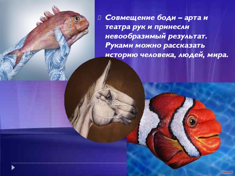 Совмещение боди – арта и театра рук и принесли невообразимый результат.