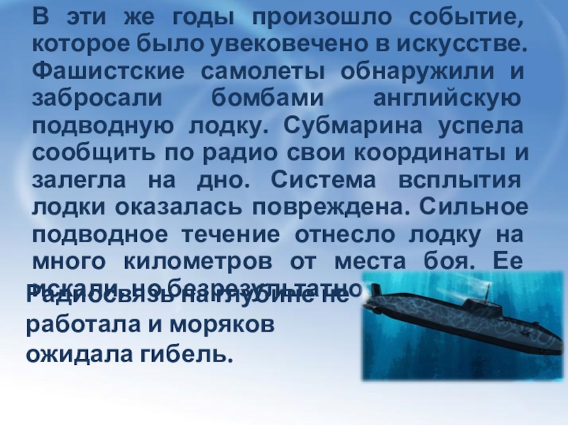 Радиосвязь на глубине не работала и моряков ожидала гибель.