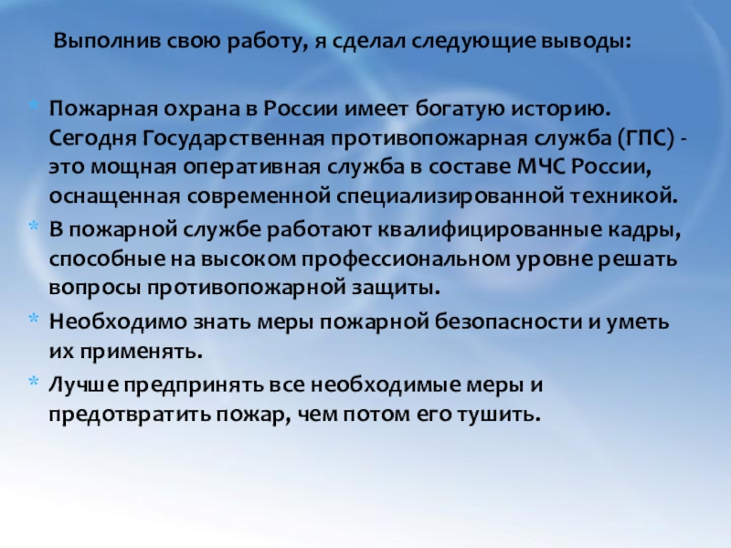 Слайд 19 Выполнив свою работу, я сделал следующие выводы: