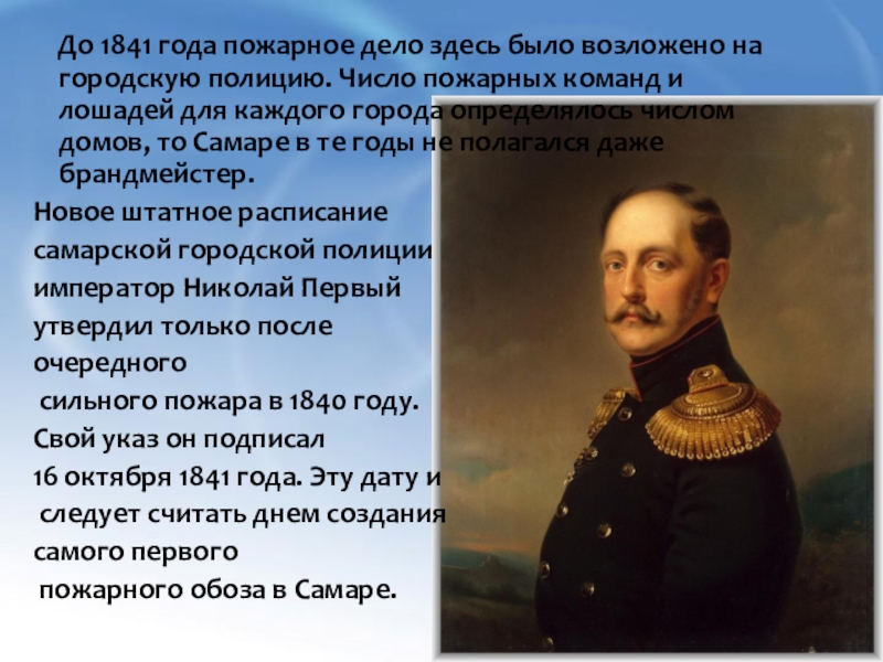 Слайд 10 До 1841 года пожарное дело здесь было возложено на