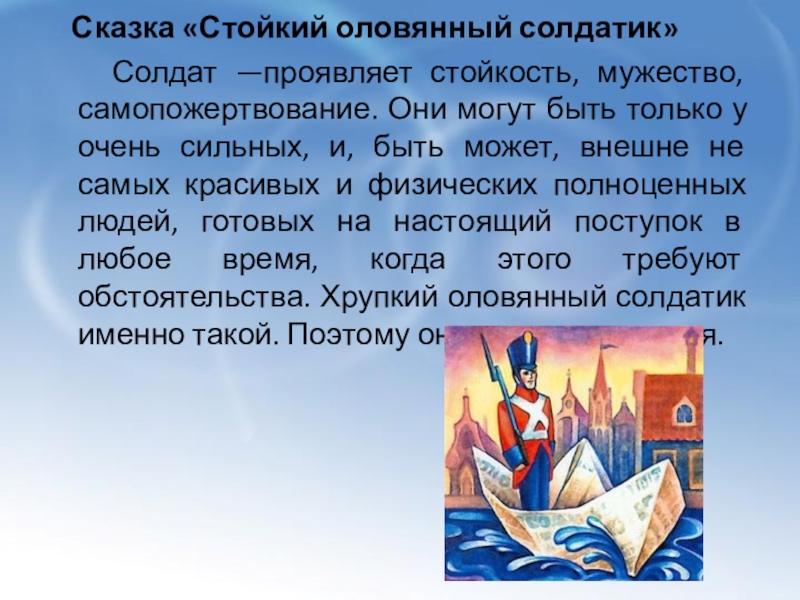 Слайд 15 Сказка «Стойкий оловянный солдатик»