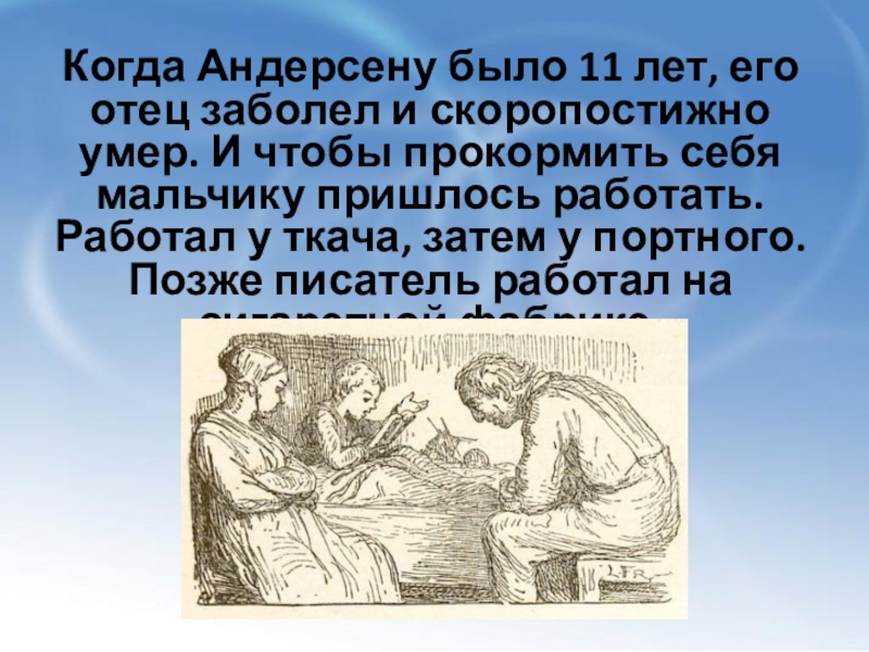 Когда Андерсену было 11 лет, его отец заболел и скоропостижно умер.