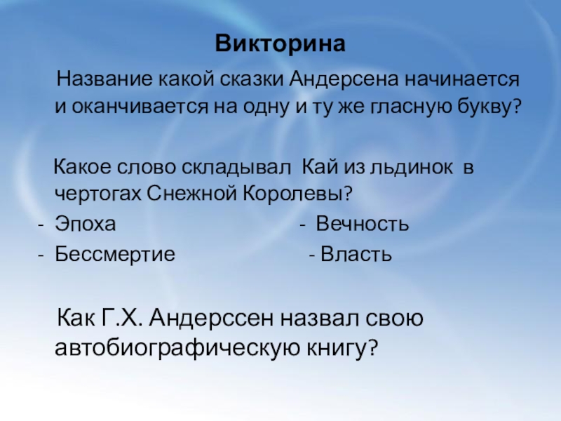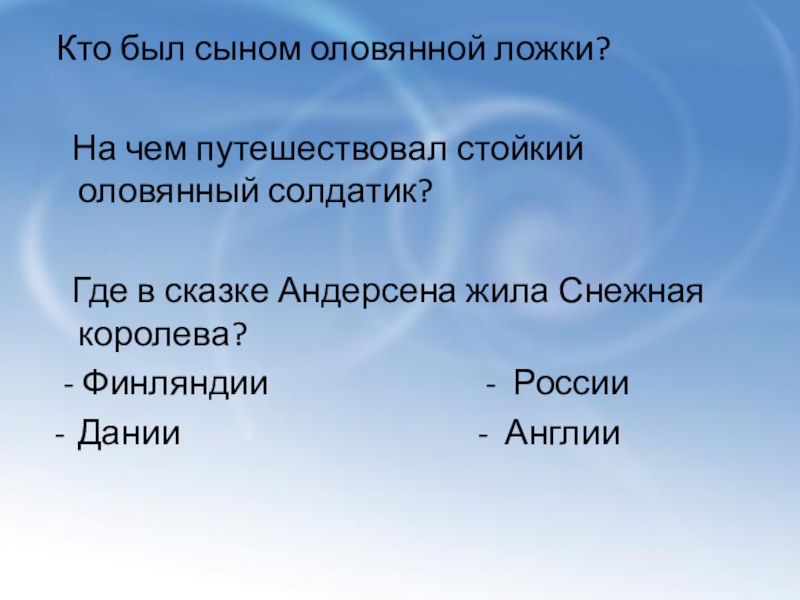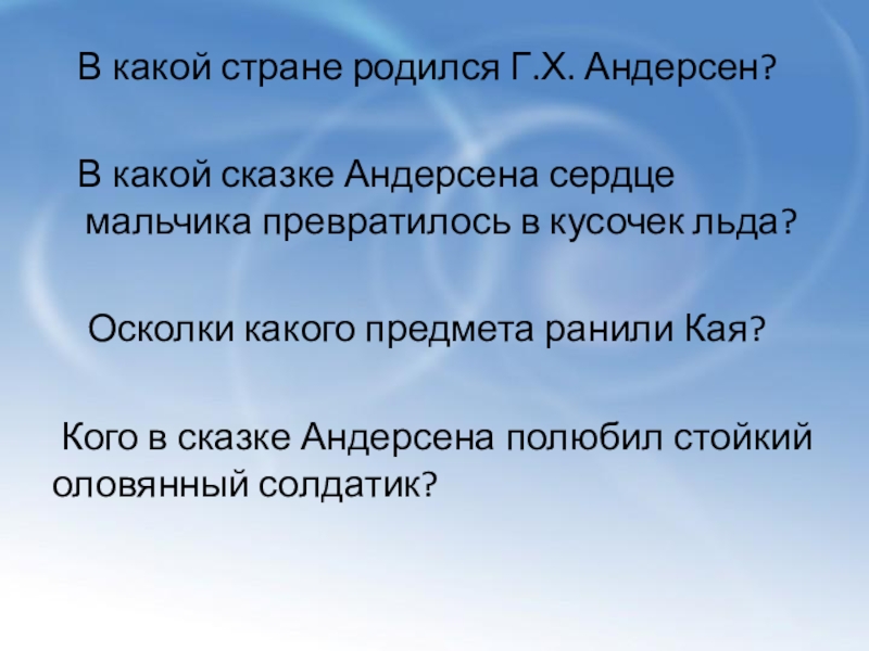 Слайд 17 В какой стране родился Г.Х. Андерсен?