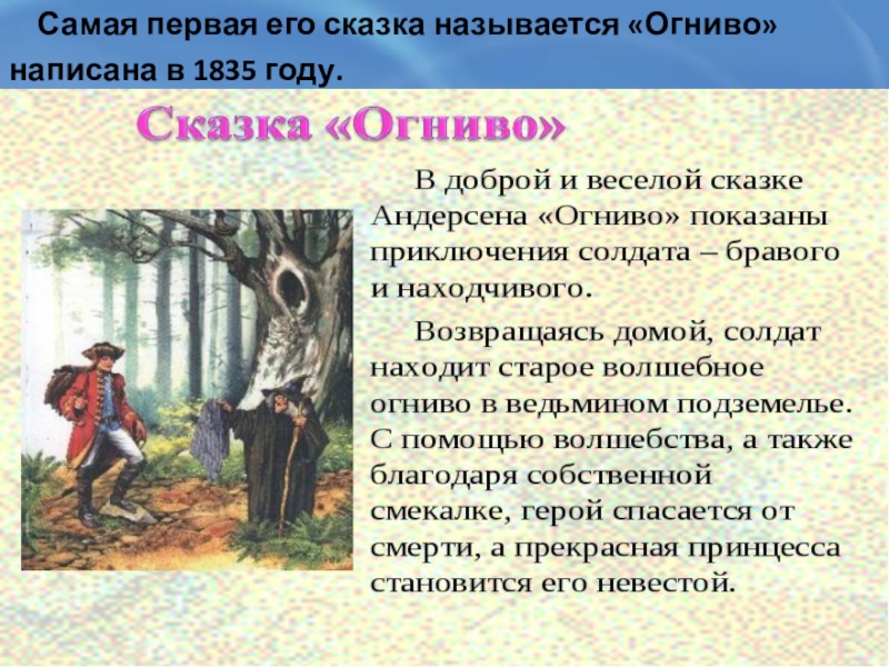 Слайд 12 Самая первая его сказка называется «Огниво»