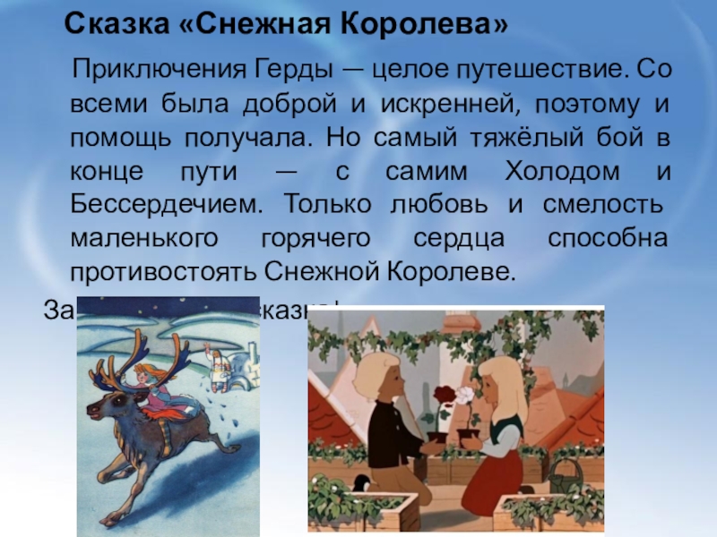 Слайд 14 Сказка «Снежная Королева»