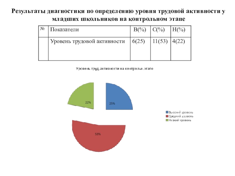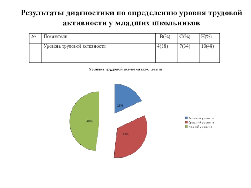 Слайд 10Результаты диагностики по определению уровня трудовой активности у младших школьников
