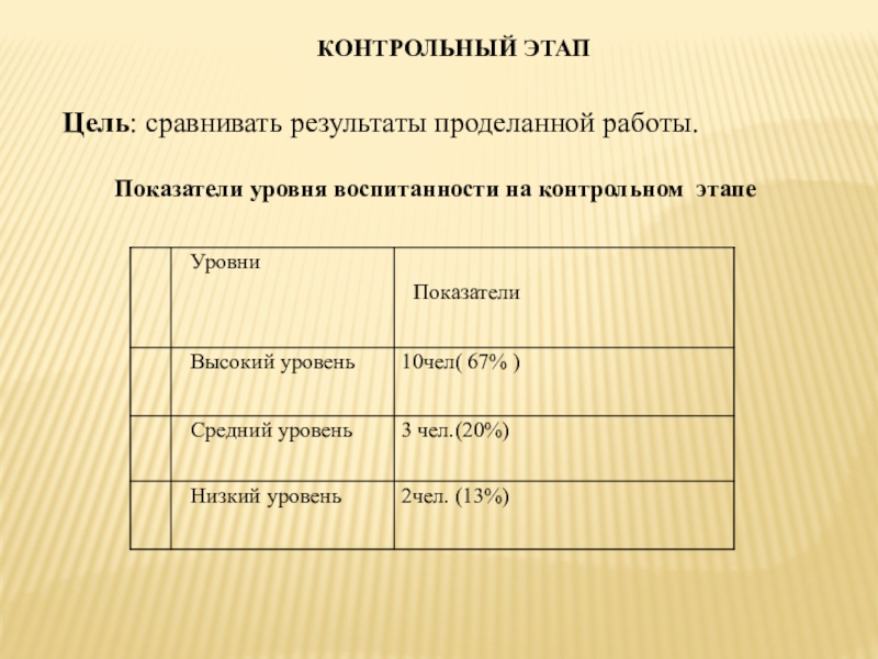 Слайд 12Показатели уровня воспитанности на контрольном этапе