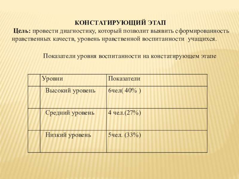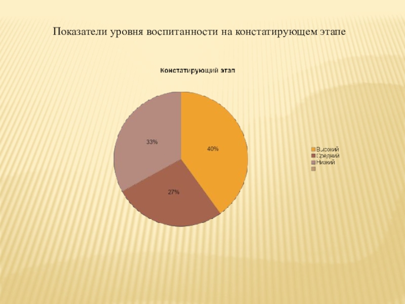 Слайд 9Показатели уровня воспитанности на констатирующем этапе