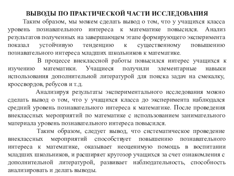 Слайд 11ВЫВОДЫ ПО ПРАКТИЧЕСКОЙ ЧАСТИ ИССЛЕДОВАНИЯ
