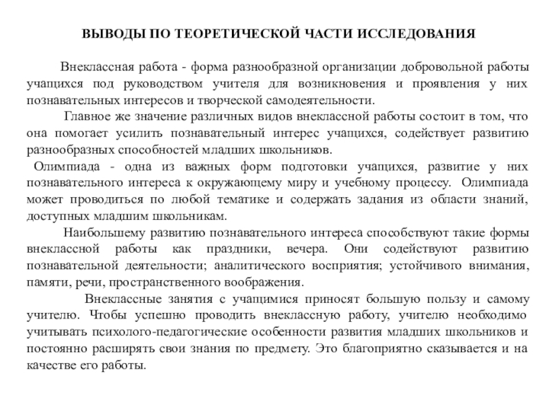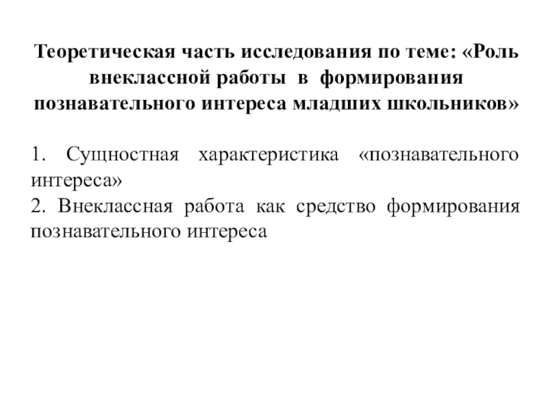 Слайд 4Теоретическая часть исследования по теме: «Роль внеклассной работы в формирования познавательного