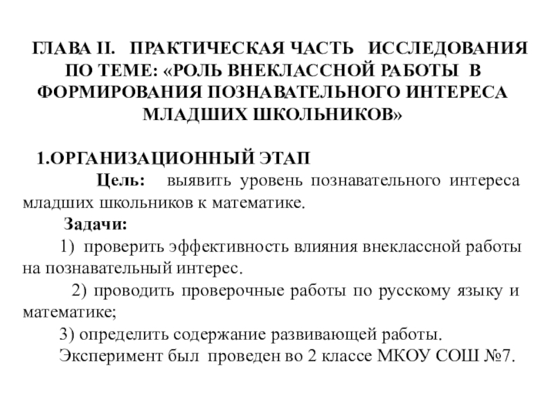 Слайд 6ГЛАВА II. ПРАКТИЧЕСКАЯ ЧАСТЬ ИССЛЕДОВАНИЯ ПО ТЕМЕ: «РОЛЬ ВНЕКЛАССНОЙ