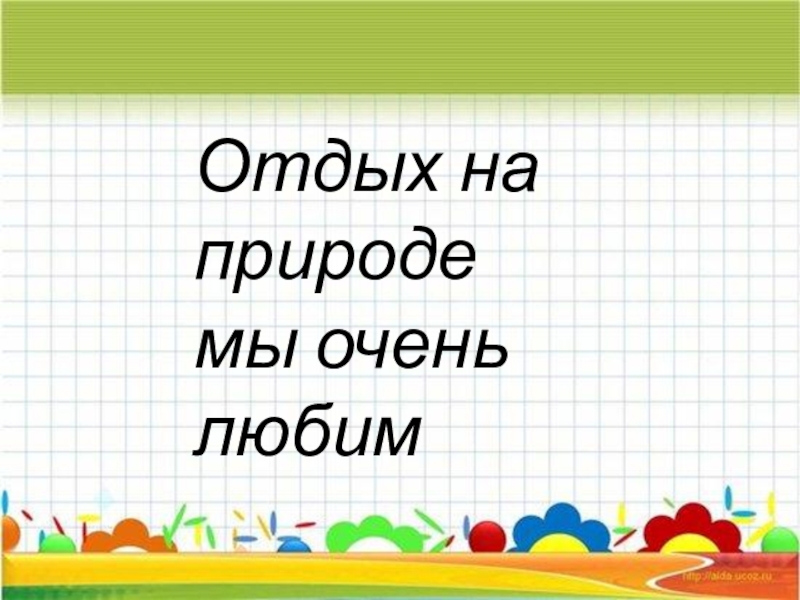 Слайд 9Отдых на природе мы очень любим