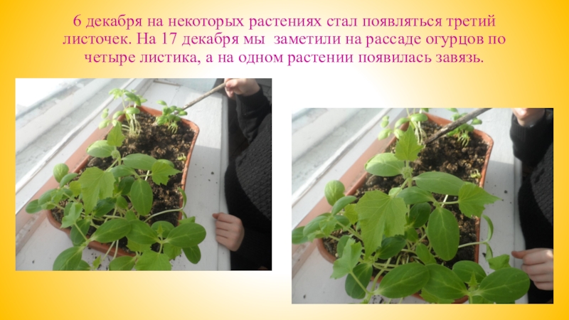 Слайд 266 декабря на некоторых растениях стал появляться третий листочек. На 17