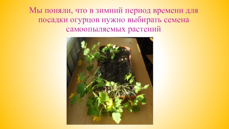 Слайд 30Мы поняли, что в зимний период времени для посадки огурцов нужно