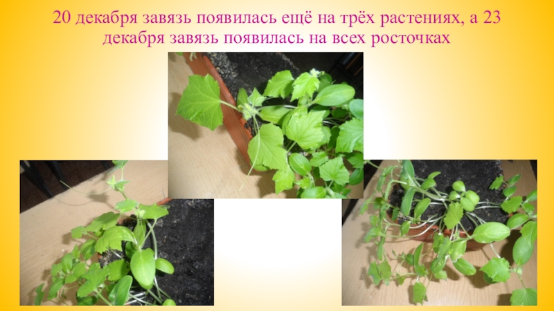 Слайд 2720 декабря завязь появилась ещё на трёх растениях, а 23 декабря