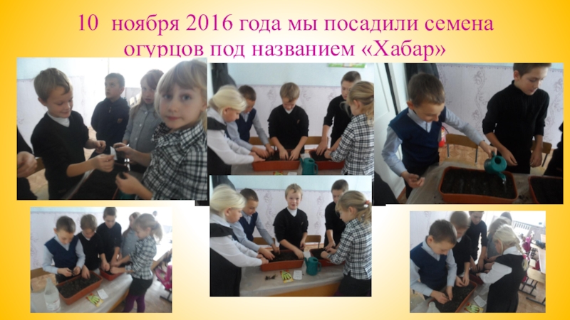 Слайд 2010 ноября 2016 года мы посадили семена огурцов под названием «Хабар»