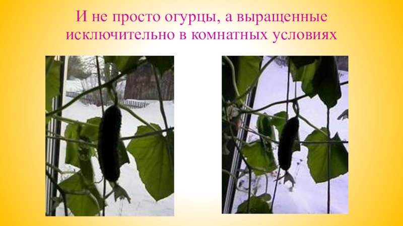 Слайд 17И не просто огурцы, а выращенные исключительно в комнатных условиях
