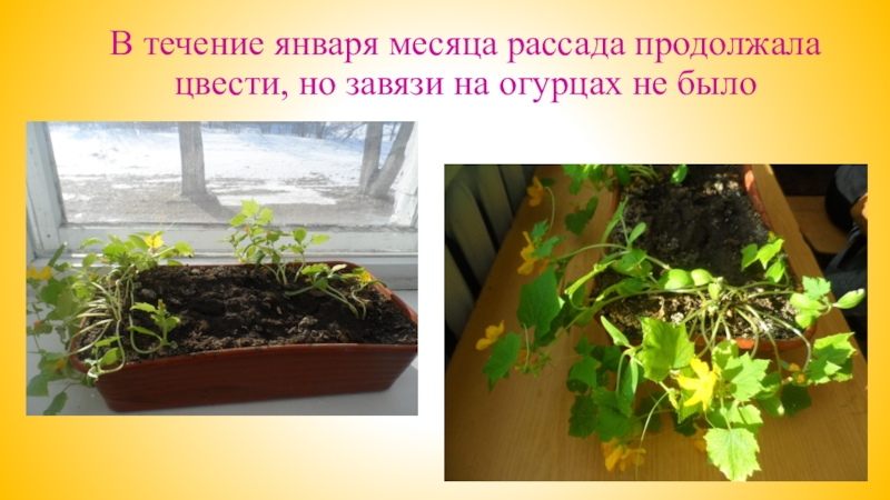 Слайд 29В течение января месяца рассада продолжала цвести, но завязи на огурцах