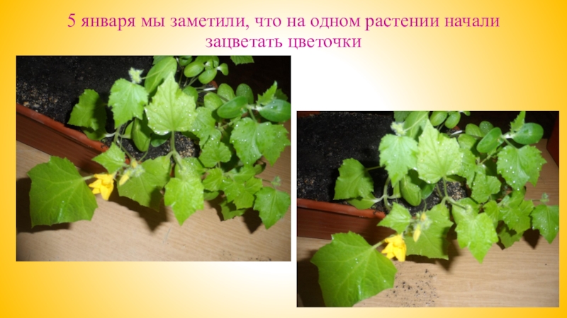 Слайд 285 января мы заметили, что на одном растении начали зацветать цветочки