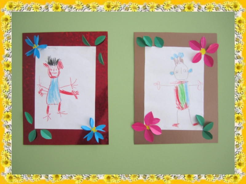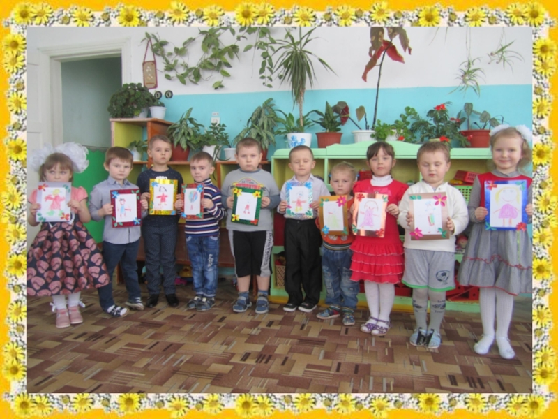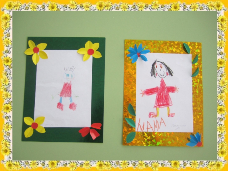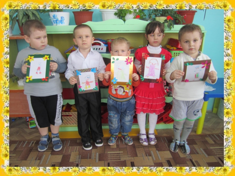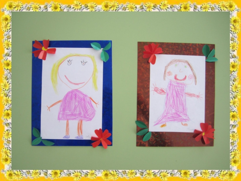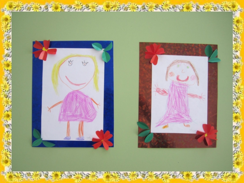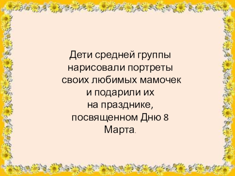 Дети средней группы нарисовали портреты своих любимых мамочек и подарили ихна празднике, посвященном Дню 8 Марта.