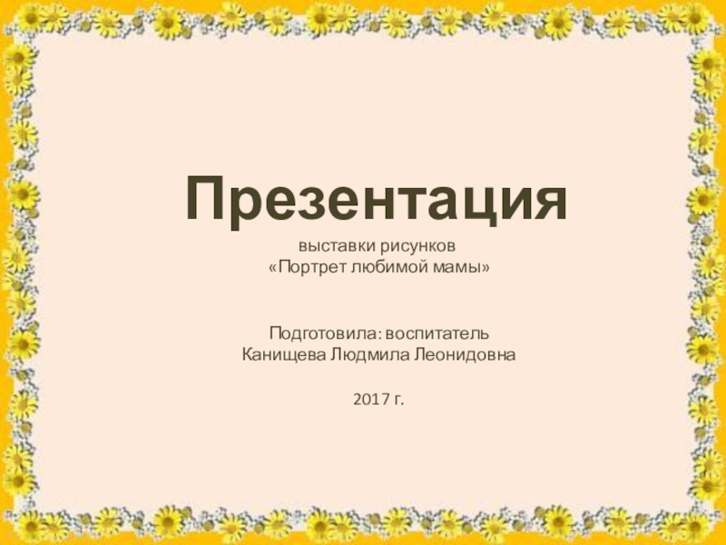 Презентациявыставки рисунков «Портрет любимой мамы» Подготовила: воспитатель Канищева Людмила Леонидовна 2017 г.