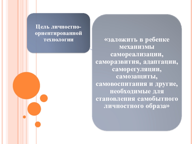 Слайд 10 Личностно-ориентированные технологии ставят в центр всей системы образования и воспитания личность