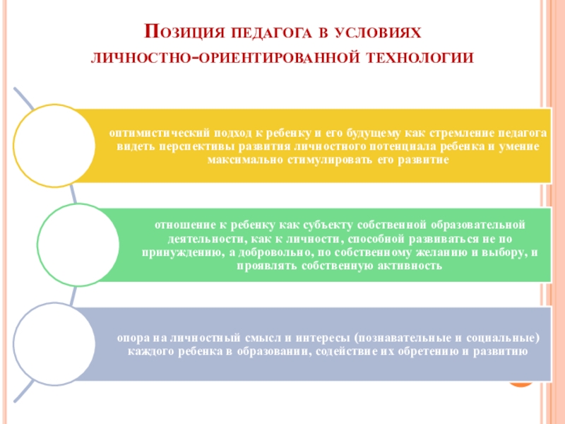 Позиция педагога в условиях  личностно-ориентированной технологии