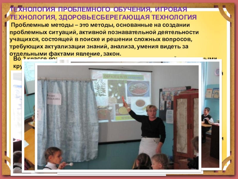 Во 2 классе возникла необходимость ознакомить детей с зерновыми крупами, а также кашами, приготовленными из них. Я придумала мероприятие «Волшебная страна Здоровья». Выступали группы детей в роли докторов, диетологов, стоматологов. Они ознакомили всех ребят с правилами сбережения здоровья. Это сопровождалось активными действиями по образцу, загадыванием загадок, советами. Затем в виде «мозгового штурма» группам детей было предложено определить образцы зерна на основе предположений и занести данные в таблицу. Также методом проб и предположений нужно было узнать виды каш, информацию занести в таблицу. Группы делали ошибки, но этим пополнялся их эмпирический опыт. Это мероприятие детям и родителям очень понравилось. Они многое узнали, и мои цели были достигнуты.