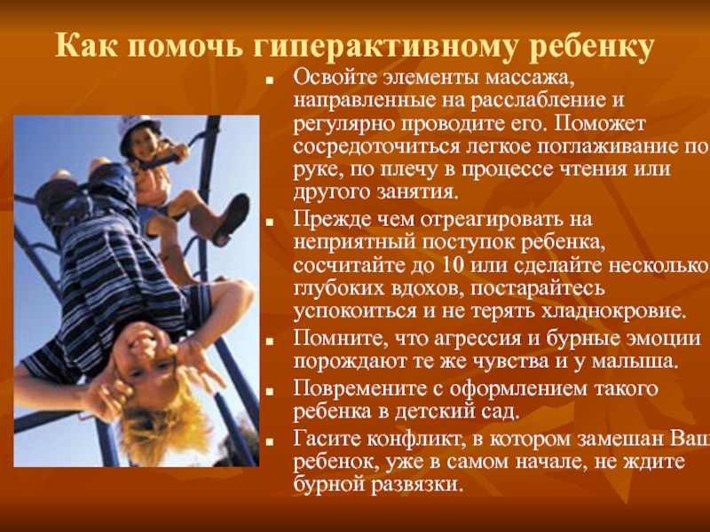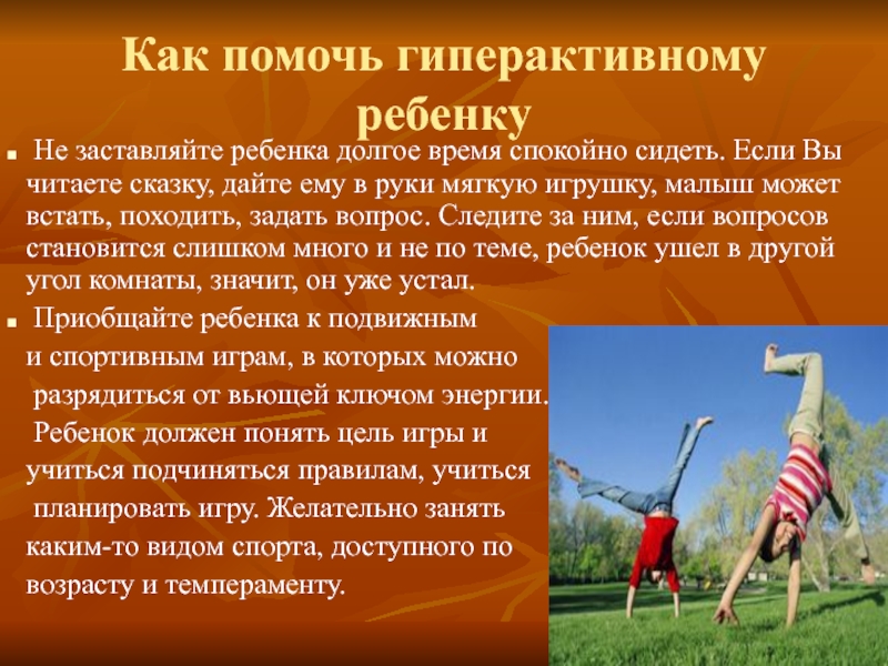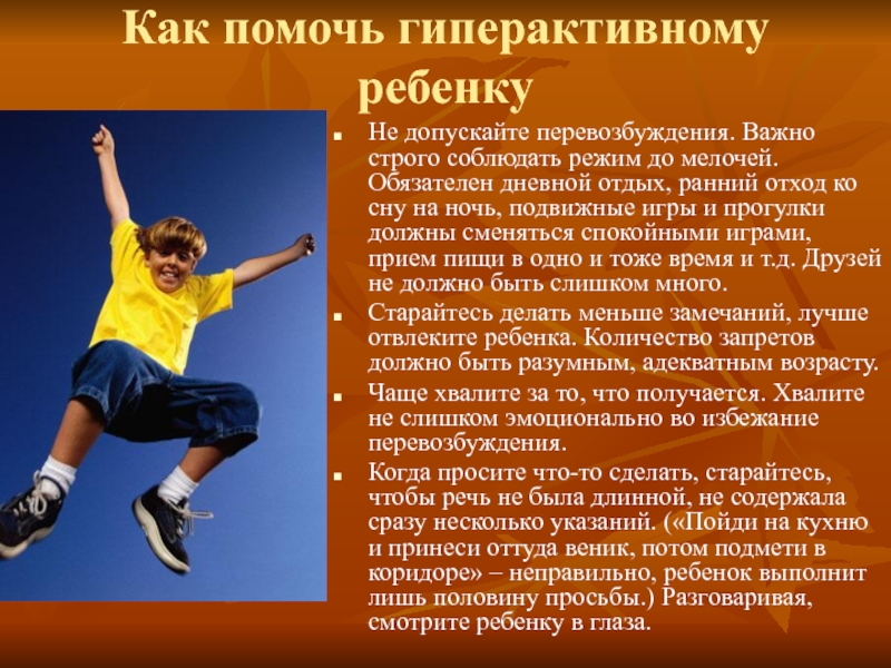 Слайд 8Как помочь гиперактивному ребенку