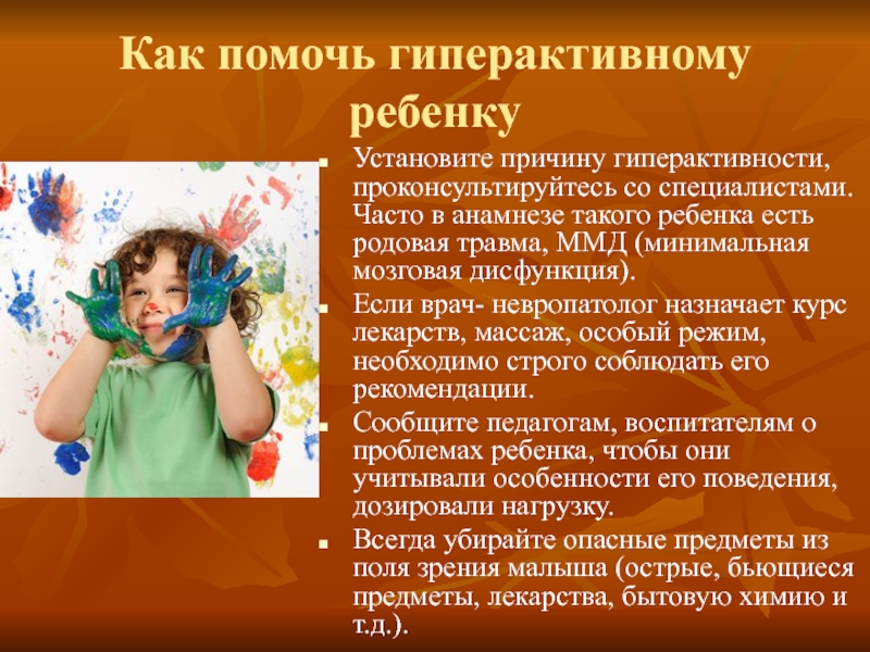 Слайд 9Как помочь гиперактивному ребенку