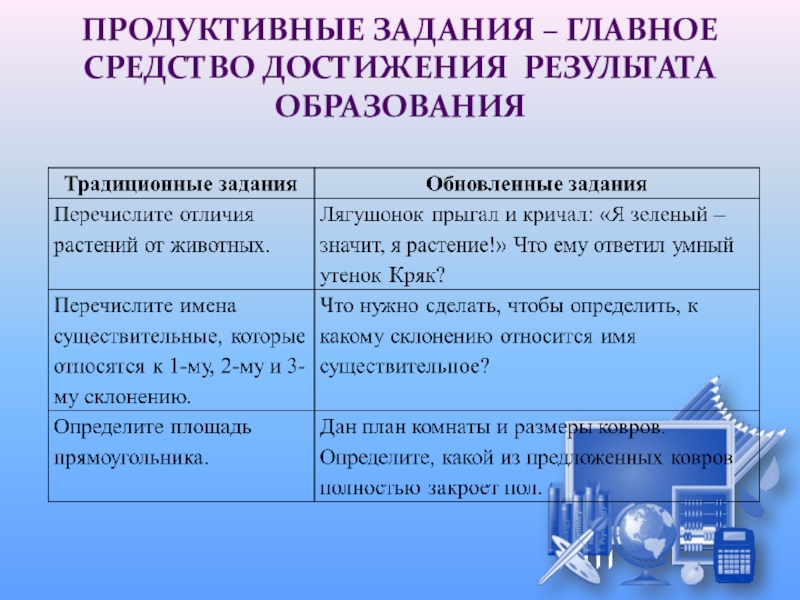 Слайд 15Продуктивные задания – главное средство достижения результата образования