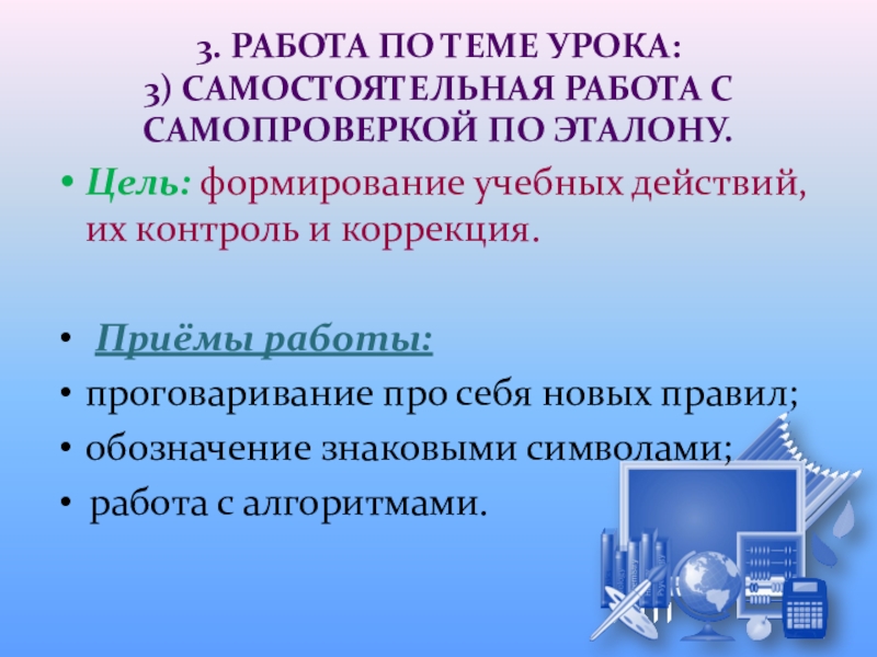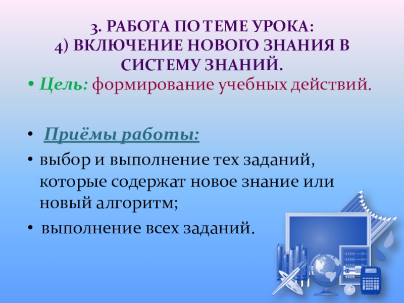 выбор и выполнение тех заданий, которые содержат новое знание или новый алгоритм;