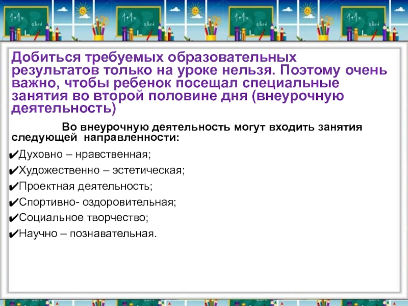 чтобы ребенок посещал специальные занятия во второй половине дня (внеурочную деятельность)