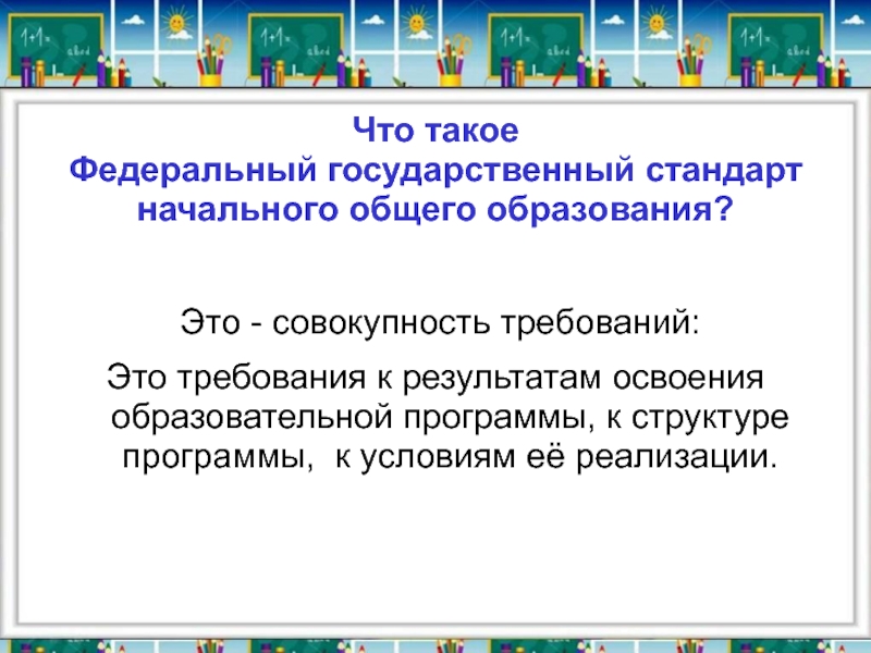 требования к результатам освоения образовательной программы, к структуре программы, к условиям её реализации.