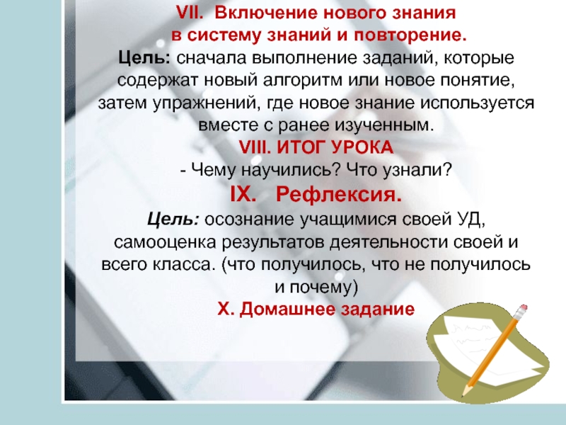 Слайд 13VII. Включение нового знания