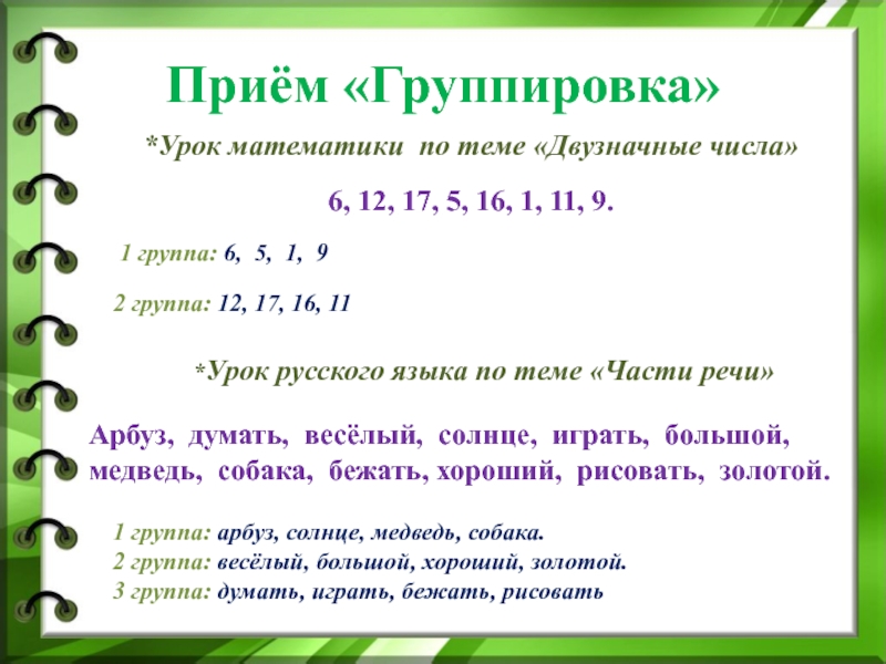 Последовательность применения приёма: